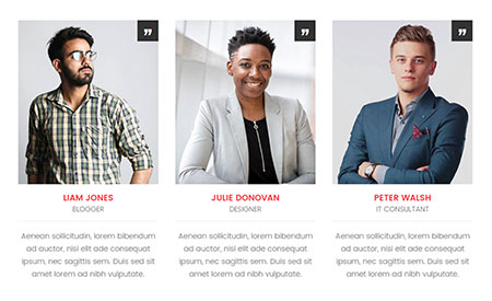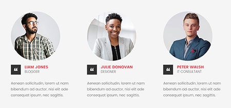 “ liam jonesblogger Aenean sollicitudin, lorem ut nam bibendum ad auctor, nisi elit ade consequat ipsum, nec sagittis. “ julie donovandesigner Aenean sollicitudin, lorem ut nam bibendum ad auctor, nisi elit ade consequat ipsum, nec sagittis. “ PETER WALSHit consultant Aenean sollicitudin, lorem ut nam bibendum ad auctor, nisi elit ade consequat ipsum, nec sagittis. …