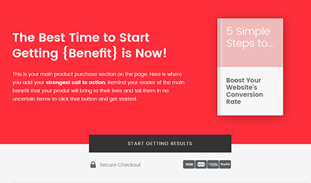 The Best Time to Start Getting {Benefit} is Now!This is your main product purchase section on the page. Here is where you add your strongest call to action. Remind your reader of the main benefit that your produt will bring to their lives and tell them in no uncertain terms to click that button and …