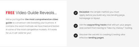 FREE Video Guide Reveals…We’ve put together the most comprehensive video guide to converison rate boosting your business. It contains the exact methods we have tried and tested in some of the most competitive markets. If it works for us, it will work for you! check Revealed: the simple method you must apply before you build any new landing page, homepage …
