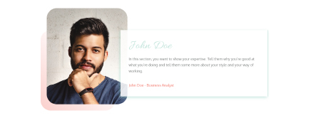 John DoeIn this section, you want to show your expertise. Tell them why you’re good at what you’re doing and tell them some more about your style and your way of working.John Doe – Business Analyst __CONFIG_group_edit__{}__CONFIG_group_edit__ __CONFIG_local_colors__{“colors”:{},”gradients”:{}}__CONFIG_local_colors__ John Doe In this section, you want to show your expertise. Tell them why you’re good at …