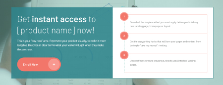 Get instant access to – product name – now!This is your “buy now” area. Represent your product visually, to make it more tangible. Describe in clear terms what your visitor will get when they make the purchase. Enroll Now 1 Revealed: the simple method you must apply before you build any new landing page, homepage …