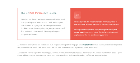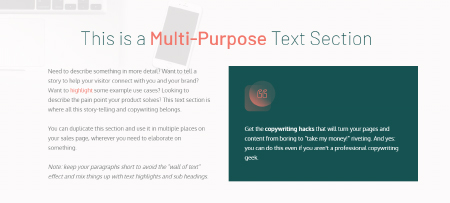 This is a Multi-Purpose Text Section Need to describe something in more detail? Want to tell a story to help your visitor connect with you and your brand? Want to highlight some example use cases? Looking to describe the pain point your product solves? This text section is where all this story-telling and copywriting belongs. …
