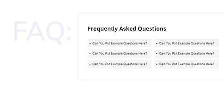 FAQ: Frequently Asked Questions Can You Put Example Questions Here? Provide some answers to common questions. Perhaps you want to tell answer how much time they need to dedicate to get through the course, or give them a support email to contact you if they have further questions. It doesn’t need to be questions you …