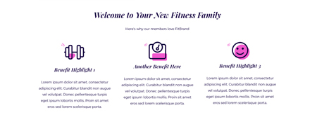 Welcome to Your New Fitness FamilyHere’s why our members love FitBrand Benefit Highlight 1Lorem ipsum dolor sit amet, consectetur adipiscing elit. Curabitur blandit non augue vel volutpat. Donec pellentesque turpis eget ipsum lobortis mollis. Proin sit amet eros sed lorem scelerisque porta. Another Benefit HereLorem ipsum dolor sit amet, consectetur adipiscing elit. Curabitur blandit non …