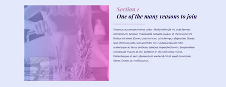 Section 1One of the many reasons to join Vivamus accumsan metus tortor. Morbi vehicula mi vitae laoreet elementum. Aenean malesuada posuere augue, et rhoncus tortor finibus sit amet. Donec quis nunc eu urna tempus dignissim. Donec quis rhoncus justo, quis porttitor orci. Quisque ipsum nibh, scelerisque ac lacus pretium, tempus imperdiet lorem. Suspendisse consequat mauris …