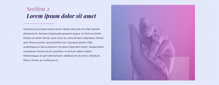 Section 2Lorem ipsum dolor sit amet Vivamus accumsan metus tortor. Morbi vehicula mi vitae laoreet elementum. Aenean malesuada posuere augue, et rhoncus tortor finibus sit amet. Donec quis nunc eu urna tempus dignissim. Donec quis rhoncus justo, quis porttitor orci. Quisque ipsum nibh, scelerisque ac lacus pretium, tempus imperdiet lorem. Suspendisse consequat mauris at orci …