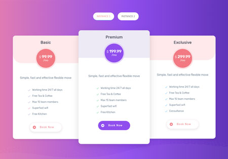 Instance 1 Instance 2 Basic $ 99.99/mo Simple, fast and effective flexible move Working time 24/7 all days Free Tea & Coffee Max 15 team members Superfast wifi Free Kitchen Book Now Premium $ 199.99/mo Simple, fast and effective flexible move Working time 24/7 all days Free Tea & Coffee Max 15 team members Superfast wifi …