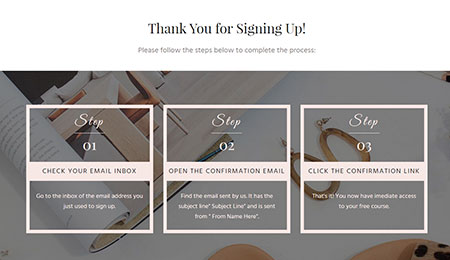 Thank You for Signing Up!Please follow the steps below to complete the process: Step 01check your email inboxGo to the inbox of the email address you just used to sign up. Step 02OPEN THE CONFIRMATION EMAILFind the email sent by us. It has the subject line” Subject Line” and is sent from ” From Name …