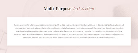 Multi-Purpose Text Section Lorem ipsum dolor sit amet, consectetur adipisicing elit, sed do eiusmod tempor incididunt ut labore et dolore magna aliqua. Ut enim ad minim veniam, quis nostrud exercitation ullamco laboris nisi ut aliquip ex ea commodo consequat. Duis aute irure dolor in reprehenderit in voluptate velit esse cillum dolore eu fugiat nulla pariatur. …