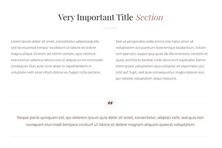 Very Important Title Section Lorem ipsum dolor sit amet, consectetur adipisicing elit, sed do eiusmod tempor incididunt ut labore et dolore magna aliqua. Ut enim ad minim veniam, quis nostrud exercitation ullamco laboris nisi ut aliquip ex ea commodo consequat. Duis aute irure dolor in reprehenderit in voluptate velit esse cillum dolore eu fugiat nulla pariatur. …