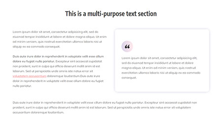 This is a multi-purpose text sectionLorem ipsum dolor sit amet, consectetur adipisicing elit, sed do eiusmod tempor incididunt ut labore et dolore magna aliqua. Ut enim ad minim veniam, quis nostrud exercitation ullamco laboris nisi ut aliquip ex ea commodo consequat. Duis aute irure dolor in reprehenderit in voluptate velit esse cillum dolore eu fugiat nulla …